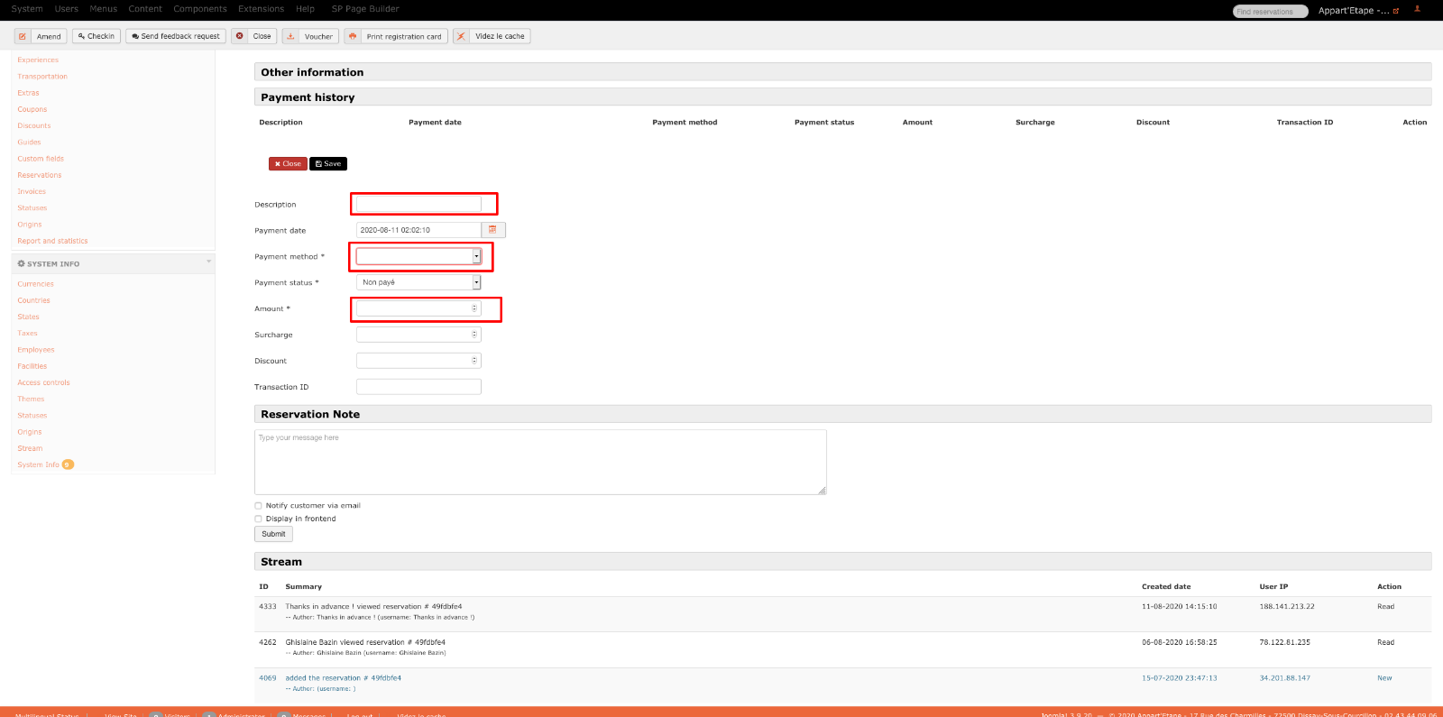 1- Have the Description, Payment Method and Amount fields pre-filled with the Customer's name and reservation code, the payment method for the initial transaction, and the default amount of the reservation. Of course by being able to modify them if necessary.