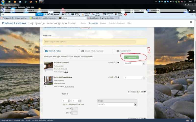 When i fill all fields in reservation form and push botton NEXT --->PROCESSING ...