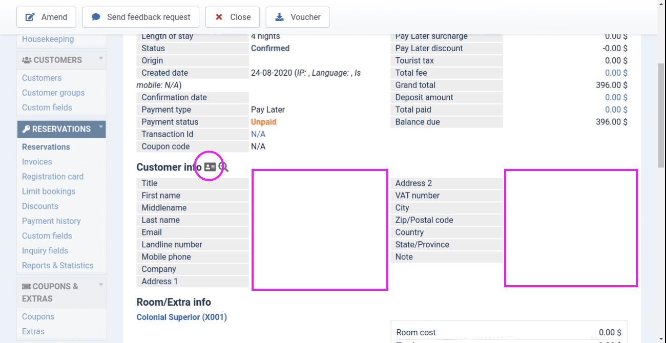 2 - If I click on "View" an old Reservation it is opened without any Customer Info, but, if I click on the View Profile icon, the User is shown. I add here an image for you. Investigating on it I found... :