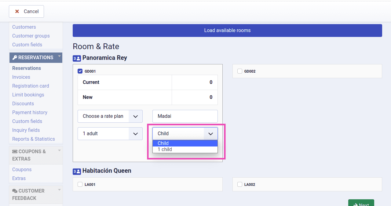 - I select the booking dates, the Property and the User. Then I load available Rooms