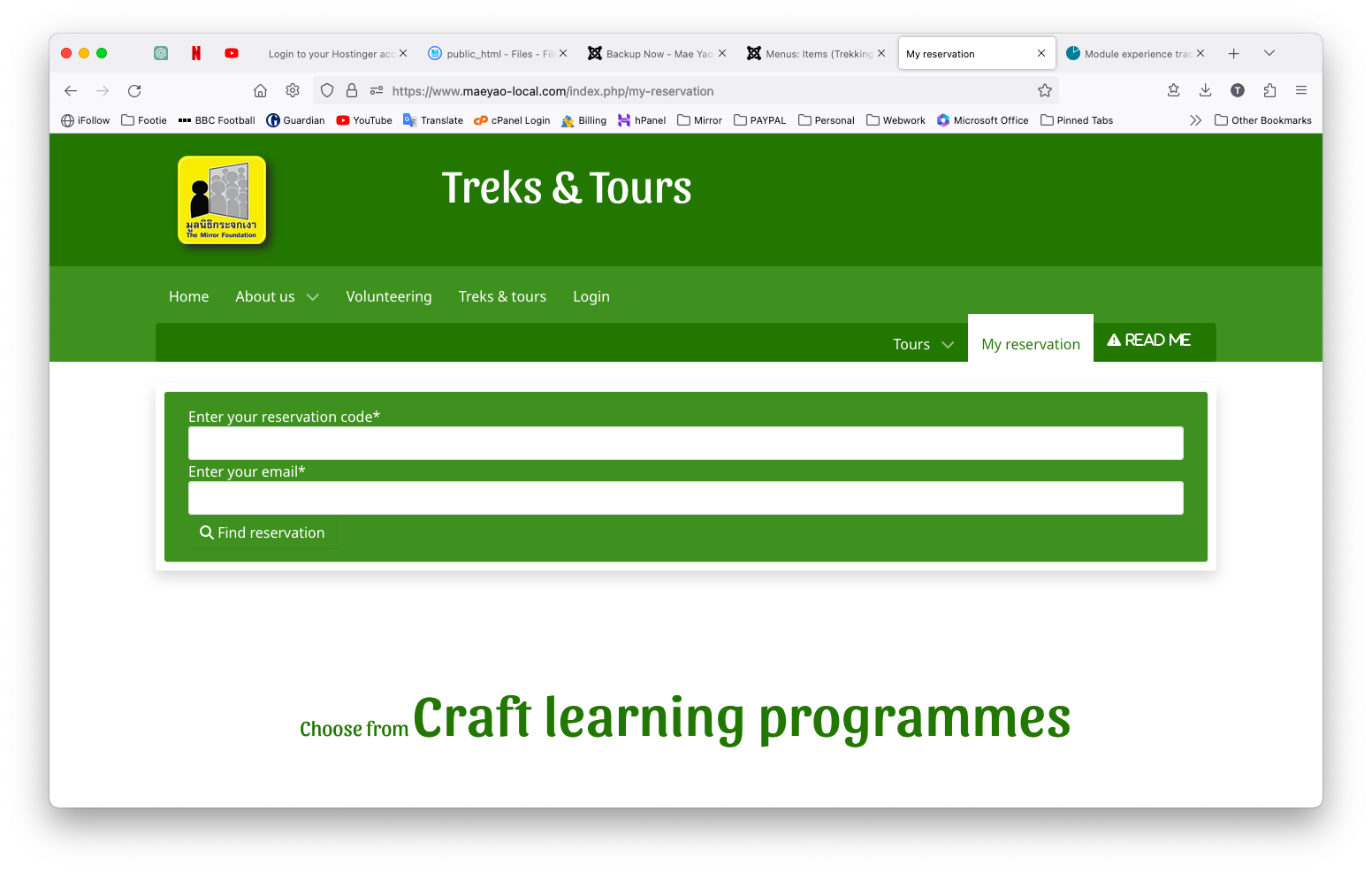 So in the main menu, when I click 'Treks & Tours' it takes me to the section homepage (Eco - Home template), with the 'My reservation' menu item on a secondary menu - click this menu item takes me to the experience tracking menu item which uses the Eco - My reservation template...