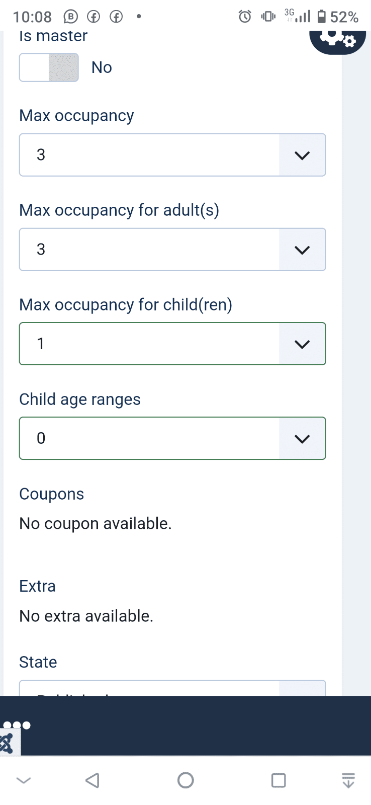 4 - Number of persons - the room permit from 1 to 3 persons, but I can only select 1 person