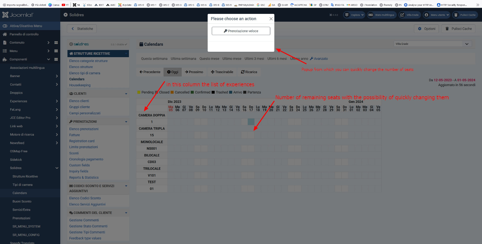 Now, to be able to change the availability of seats for each single date, it would be convenient to have a calendar (such as accomodation) where you can quickly change the number of available seats.