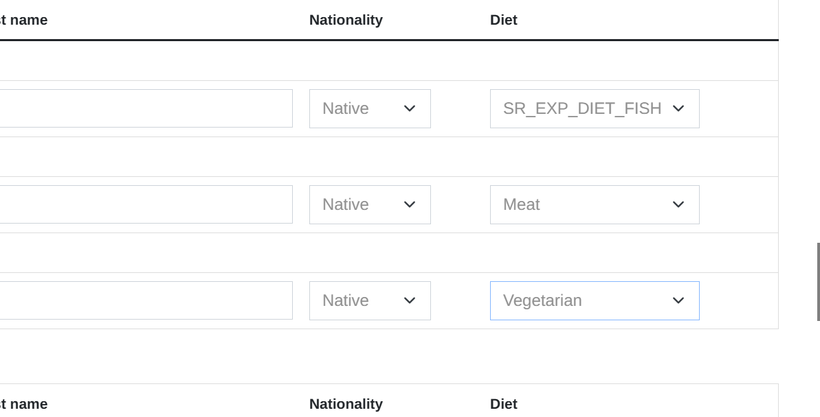 I tried also putting Fish instead of Vegan, but it appears SR_EXP_DIET_FISH (Capture-2).