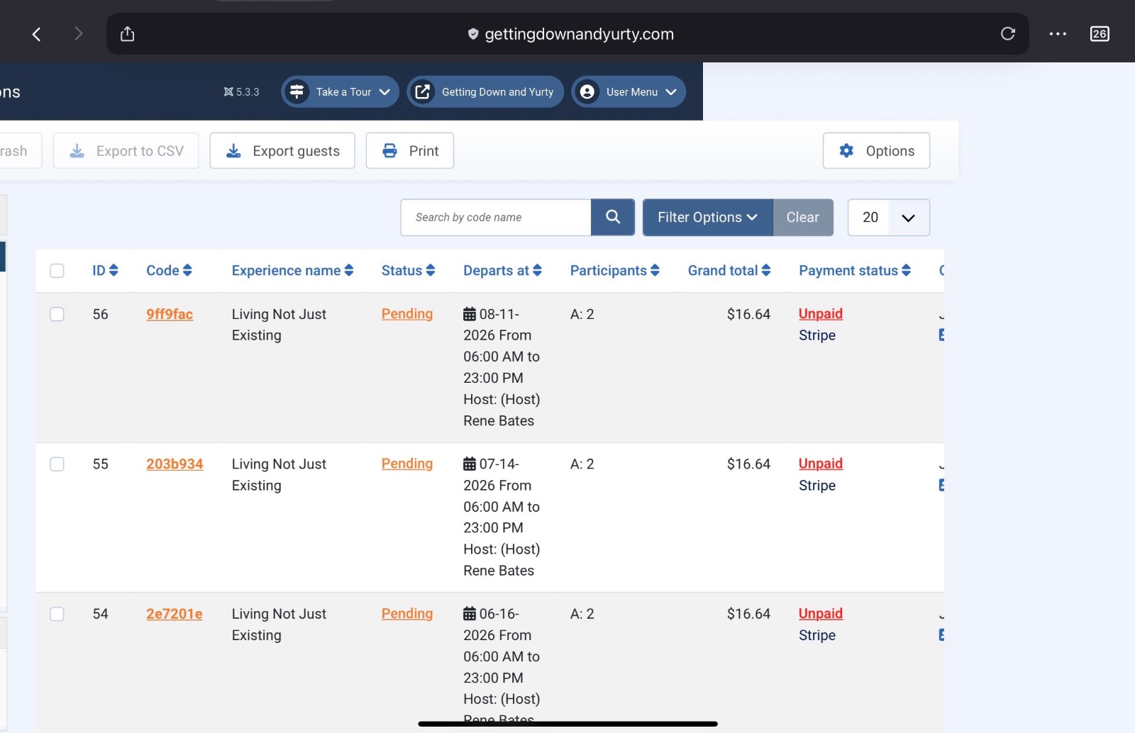 The error “Unexpected exception when initiating class” pops up on the refreshed page. The reservation gets made for the experience selected but shows unpaid and the charge doesnt show on customer statements either