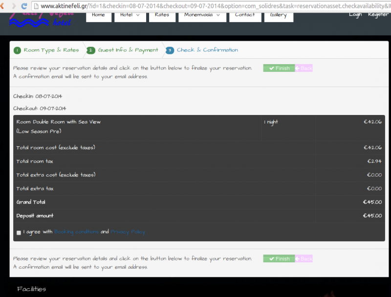 In the latest Solidres version (0.7), the 3-step reservation process has become user/customer friendlier!
