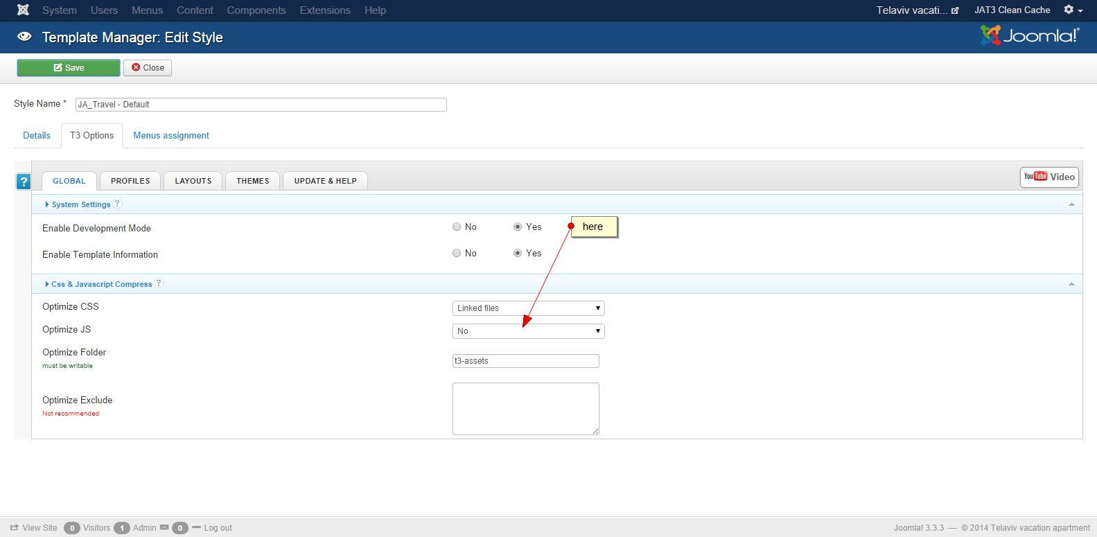 I just found the problem on your site because you are using many jQuery files but they load from external and could not work with compress js (only work internal files) in JA Travel Template. I have disabled this options from template: easycaptures.com/fs/uploaded/846/0074729113.png
