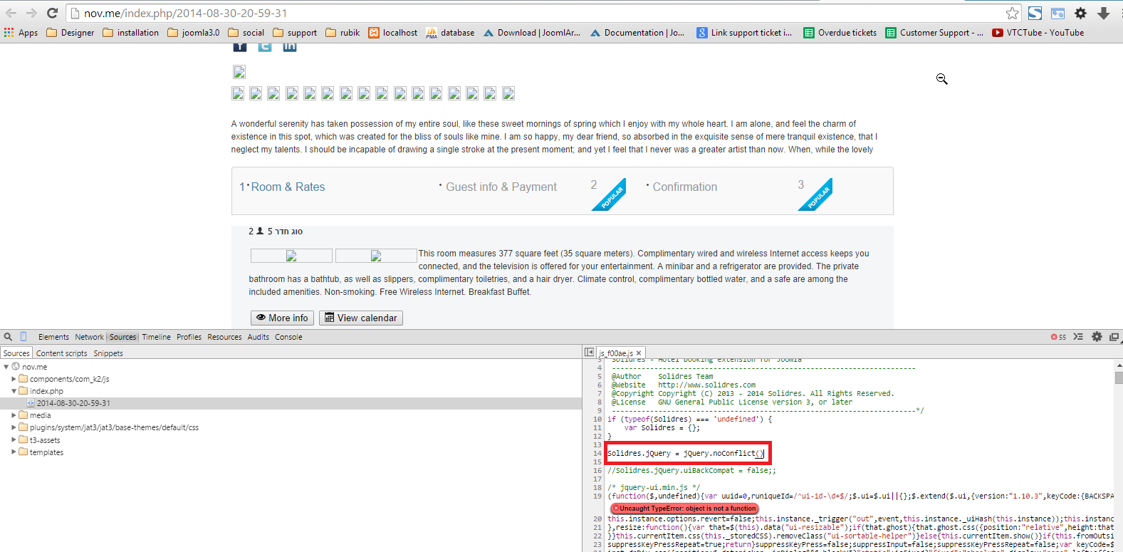 I just set all js files configuration on your site loading from internal but I found other the problem from com_solidres component because media\com_solidres\assets\js\noconflict.js file is missing ";" see the screenshot: easycaptures.com/fs/uploaded/846/6758432895.png