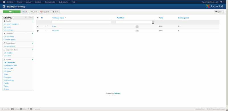 Here is my screnshots of list and configuration of currency