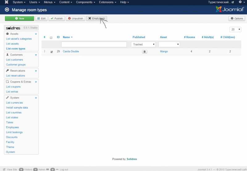 Second - when my attempt to remove anything from the trashed "List asset's categories", "List assets" or "List room types" I get the error:
