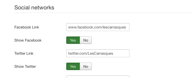 But when I click on the facebook or twitter icons in the reservation page on the front end site, it links me to : lescarrasques.com/www.facebook.com/lescarrasques which gives a 404 error