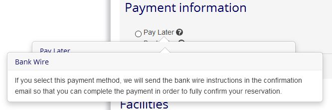 On the next page, there are information pop-ups under 'Payment Information' for 'Pay Later' and 'Bank Wire'. When I click on them I can't get them to go away again. Clicking on the pop-up or on the main page does nothing. I am using Windows 10 and it happens on both the MS Edge and Firefox browsers. It also happens on my Samsung Galaxy Android phone.