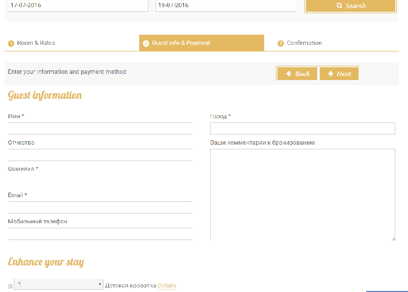 On Step 2 user, who booking, fill custom fields such as: Name and Family, email, mobile, note and other.