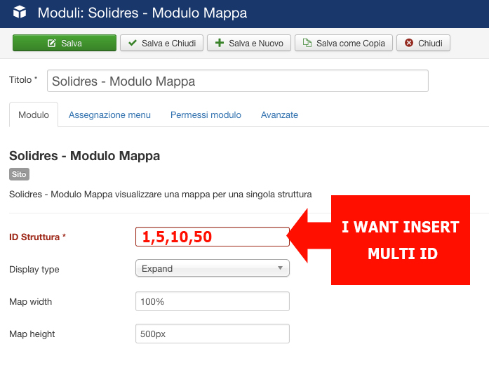 hi, I need that mod_sr_map can add more than one ID in the module, so you can add a module on the home page with all the facilities, if there was the possibility that takes automatic ID would be even better