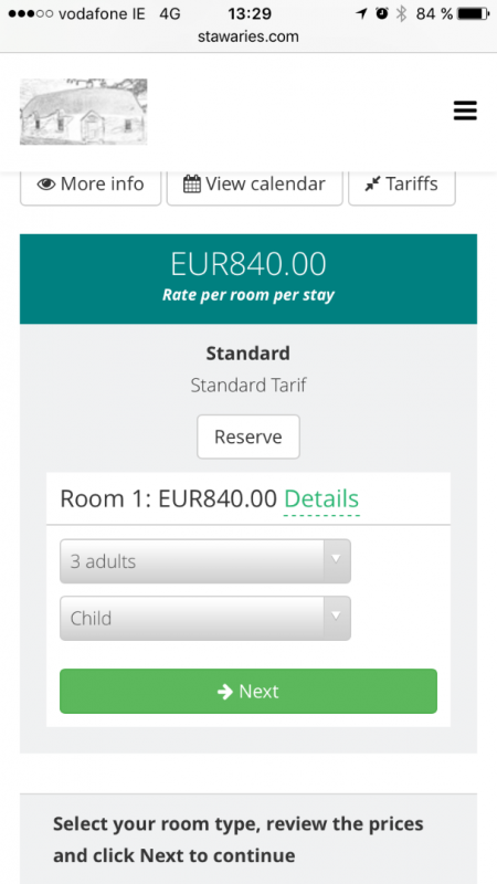 The price per room is not calculating properly. When selecting 2 adult option, the overall price shown is increased by 10%. Clicking on details, the shown prices there are correct.