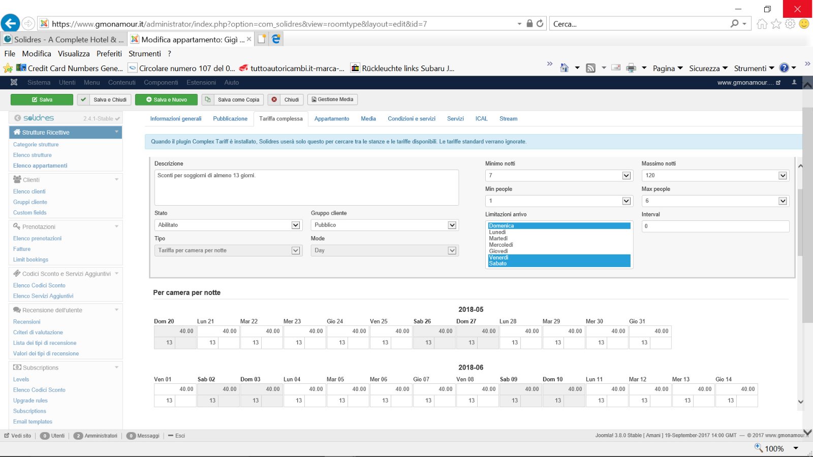 I've created a complex tariff from 20 May to 30 September with a minimum stay of 7 days.
