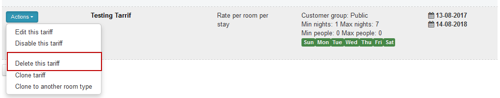 Example 1: A complex tariff, by going to Actions, Delete this tariff; the tariff will be deleted at once.