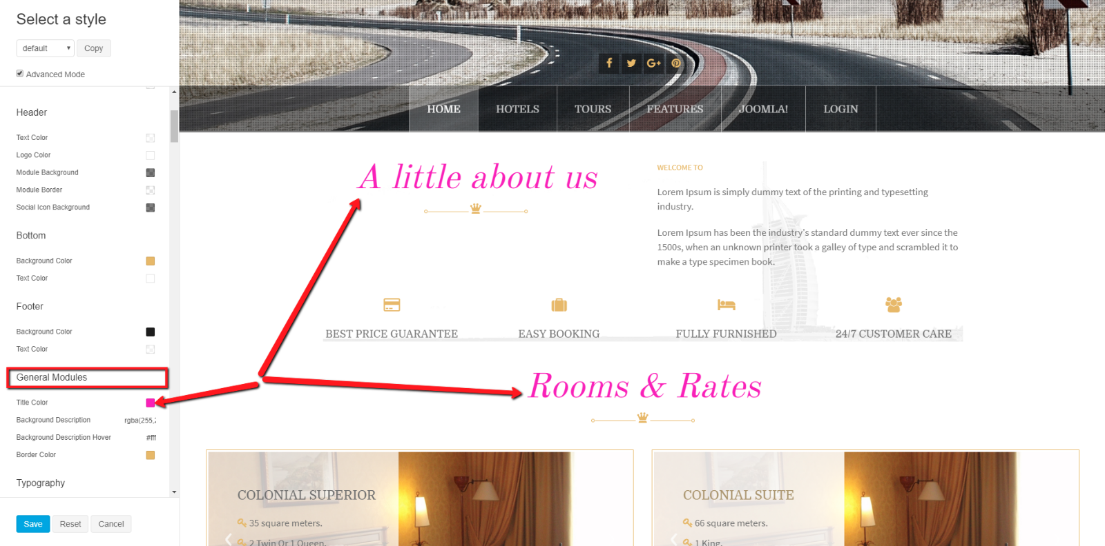 There is a problem with Emerald template style customizing. When I want to change the color of Module Title, the color doesn't change after saving and refreshing. Even in Preview I don't see any change. Such headings like Module title can change only when I change the template styles which are very limited and doesn't satisfy needs. Solidres needs to fix this issue ASAP.