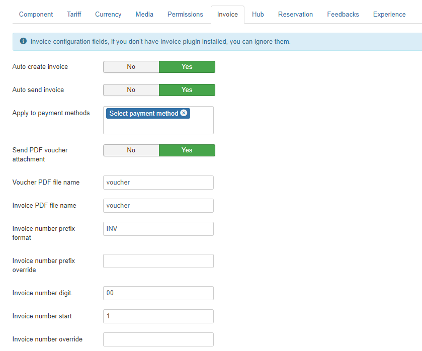 * Auto send invoice: Yes