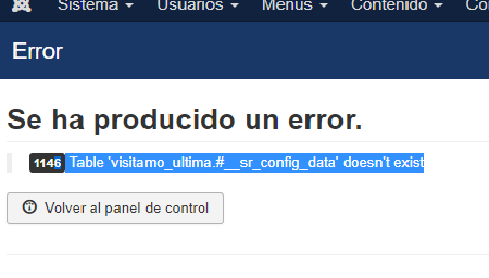 1146 Table 'visitamo_ultima.#__sr_config_data' doesn't exist