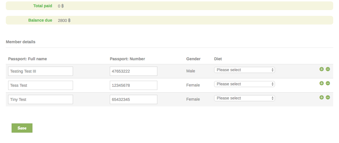 Full passport name, passport number, gender, diet (no restrictions, vegetarian, vegan, other), notes. The enables us to purchase emergency insurance cover for the group, and arrange accommodation and meals.