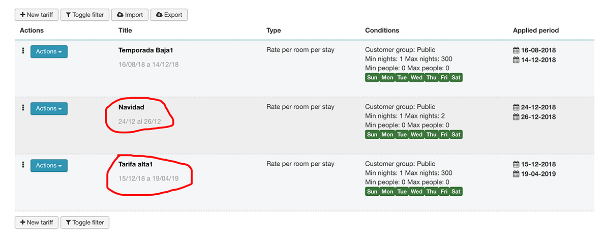 Complex rate: range of dates and Christmas was created by chaves