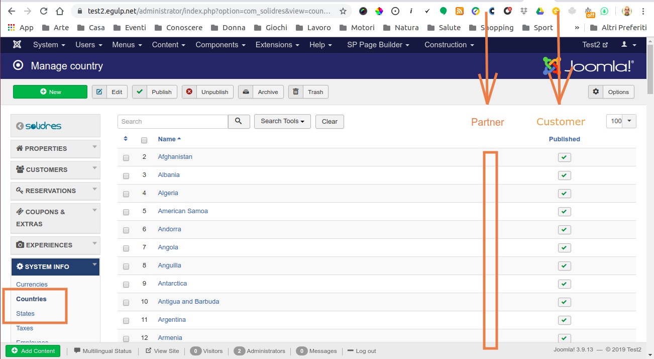 - one column will be for Partners: it defines the countries/states available for Properties and Experiences