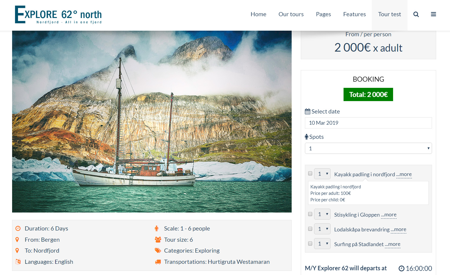 I am building a booking site with 1 main tour (sailboat) with a lot of activities as extra service/choise to do every day, on a 6 day tour.
