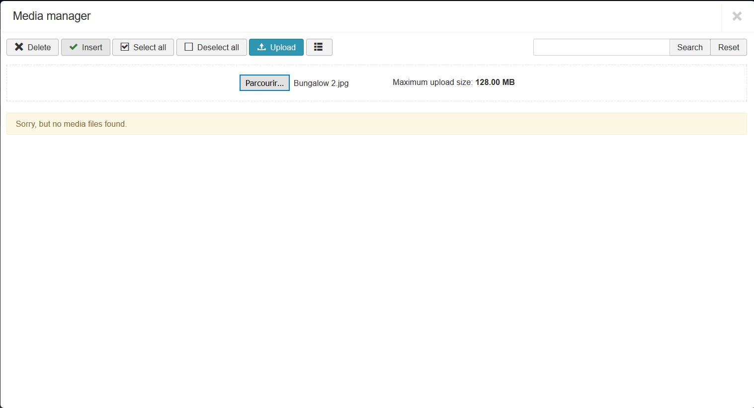 I am testing Solidres to see if it fits my clients charter yacht business and I am having the same issue with the media manager, is there a fix yet? I don't get support tickets till I subscribe and I will not do that till I see if this software fits his business at least a little. Let us know when a fix is available Please so I can add one boat to test a few of the features and test the pricing.