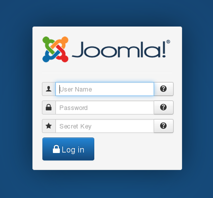 After install Joomla 3.2 alpha, go to Joomla back end log in page and you can see a new secret key field right below username and password fields. At this moment, this new field will not do anything, just leave it empty and log in with your username and password.