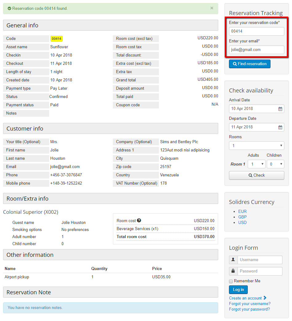 We’ve added a new feature which allow guests to check for their reservation info using a combination of reservation code and email address. Before having this feature, the only way for guest to check their reservation info is through the front end customer dashboard, however they must have a registered account to access. This feature offers an additional way and it makes the system easier to use for your guests while still being able to maintain the privacy of your guest’s reservation info.