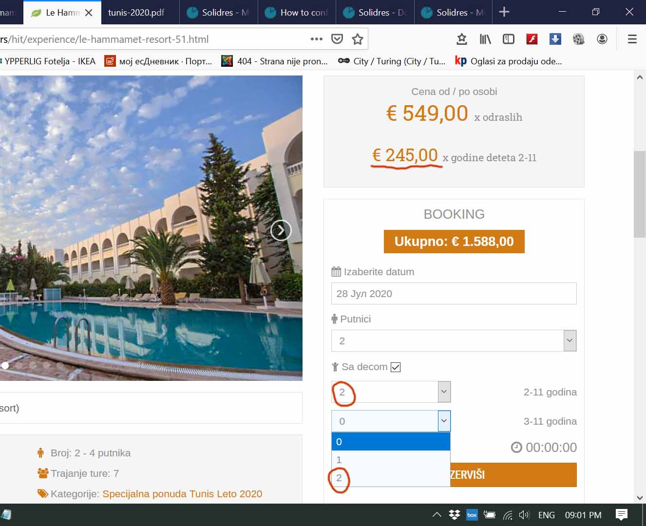 Front panel give option and calculates 2 children for each of displayed prices (Pic2. attached)