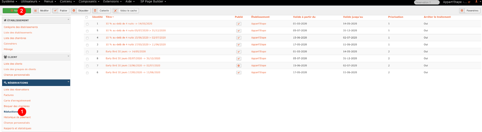 Go to the Reservation menu> Discount sub-menu