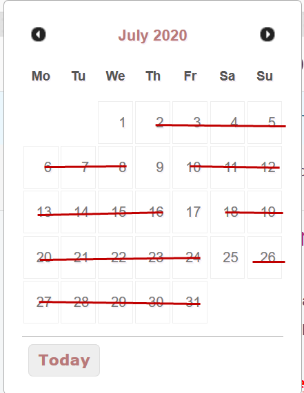 I suggest that Front End Date Picker Calender shall show only week blocks (or cross out none allowed dates):