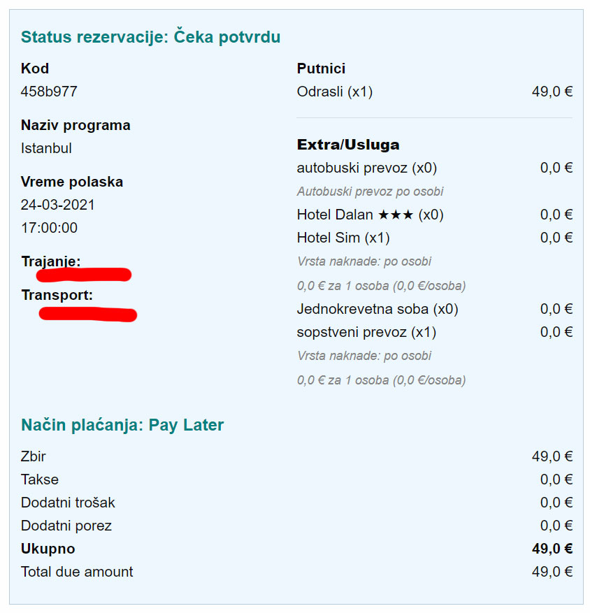 Duration is OK, but transport displays ARRAY and should autobus (bus) ili avion (plane)