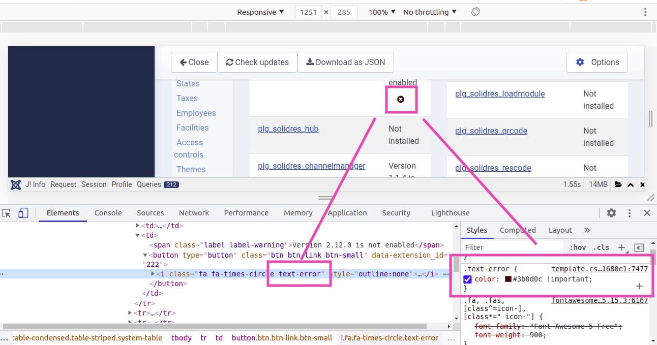 On the System Info page the "error" fa icons are quite invisible because a "text-error" color is added to them, while following Bootstrap 5 it should be "text-danger", no ?!? I attach an image for you.