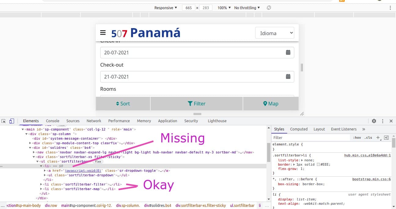 5 - the Filter Module li <li class="sortfilterbar-sort"> is missing