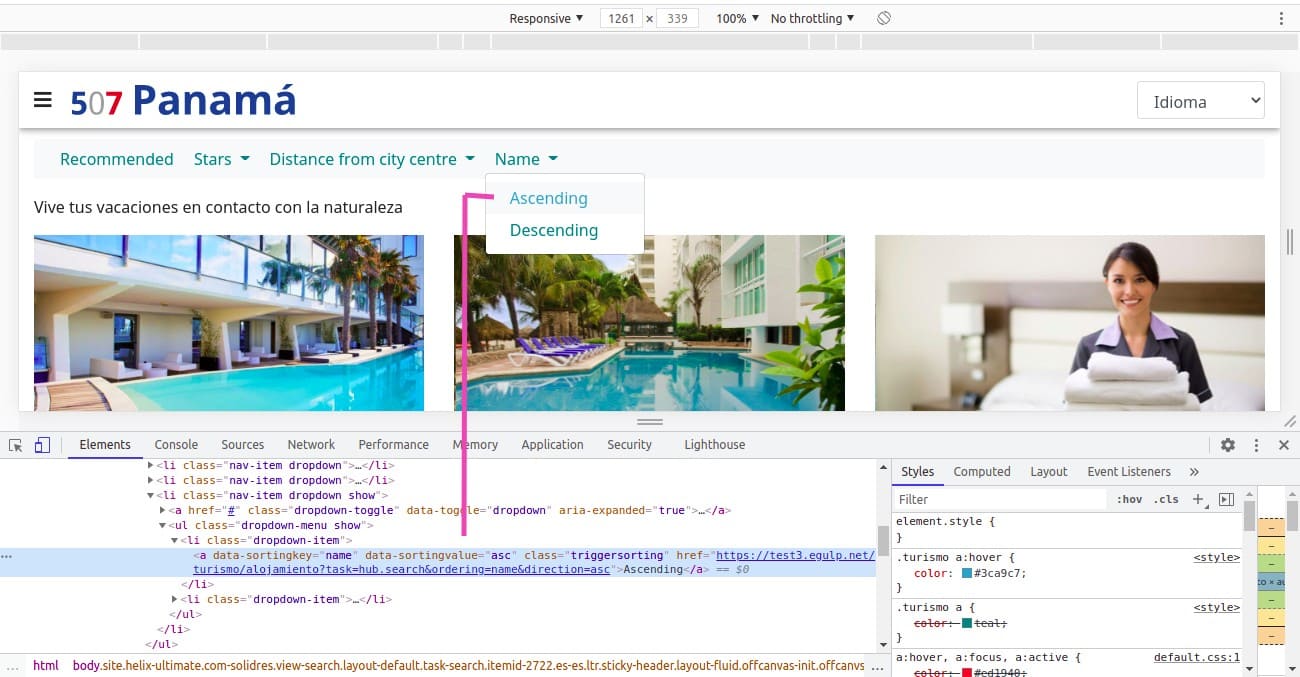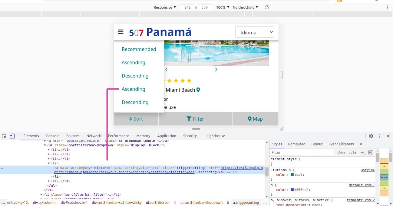 1 - While on the Navbar nav.navbar the "Distance from city center" menu is shown, switching to the the Filter Module sortfilterbar the "Distance from city center" menu disappear.