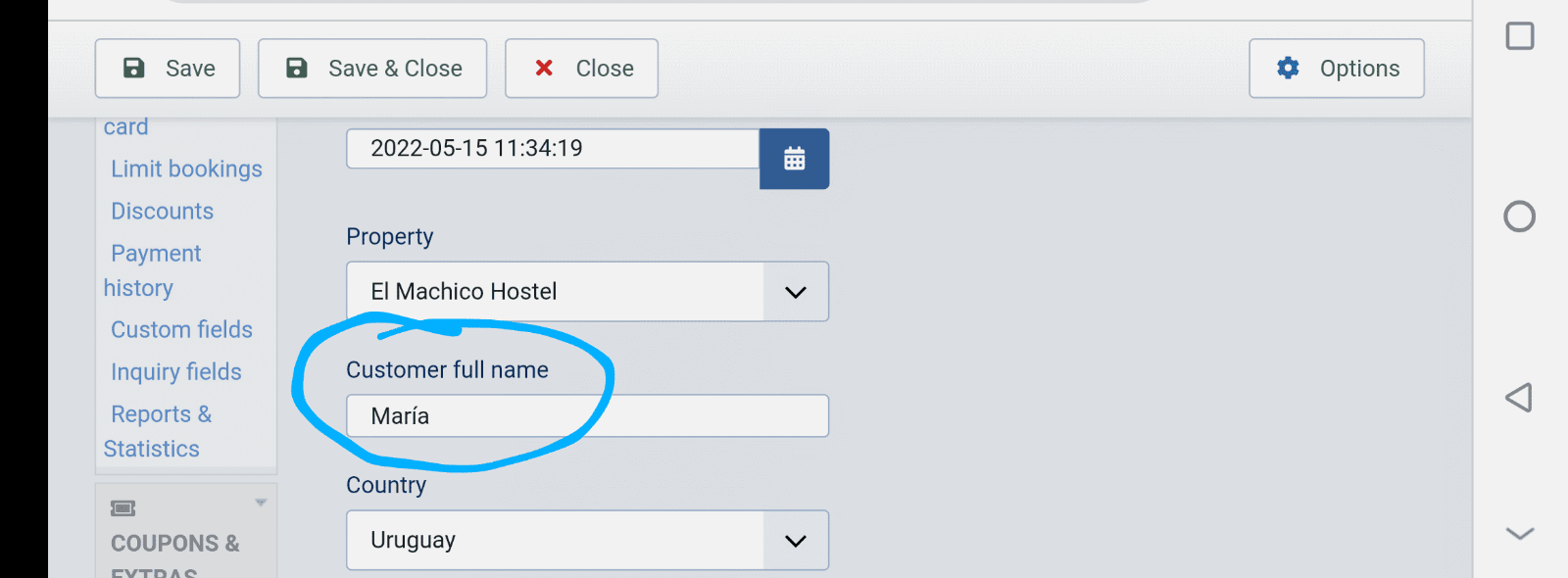 - Booking.com is showing the "Name"
