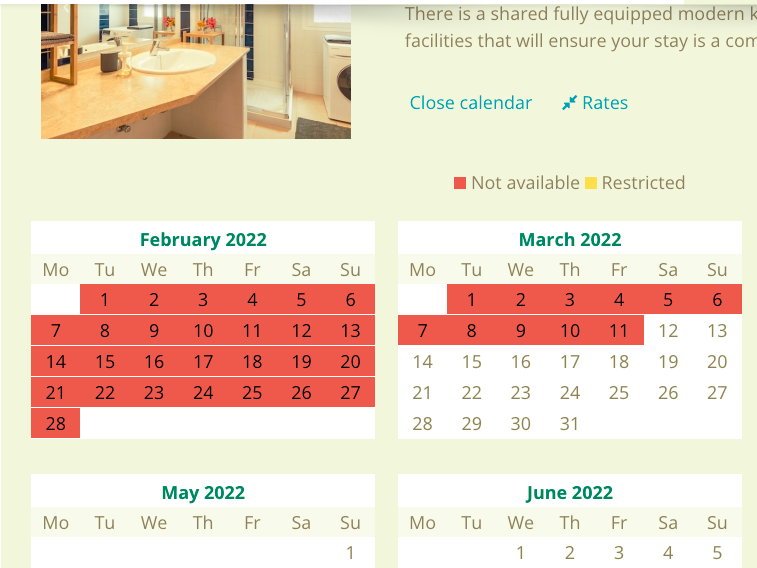It would be great to have interactive calendars not only during the booking process, but also where we check the availability, so that when you click, you can start booking there too