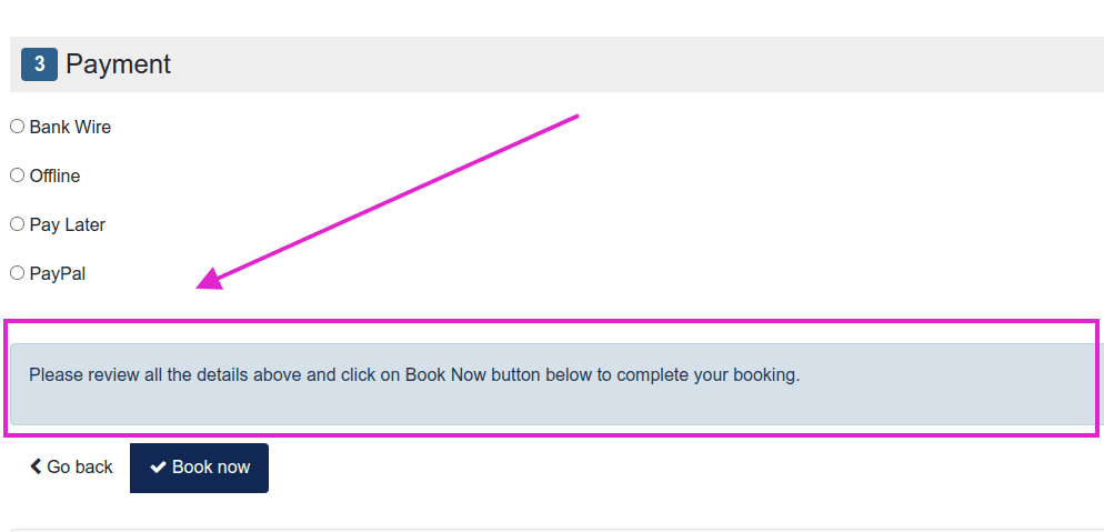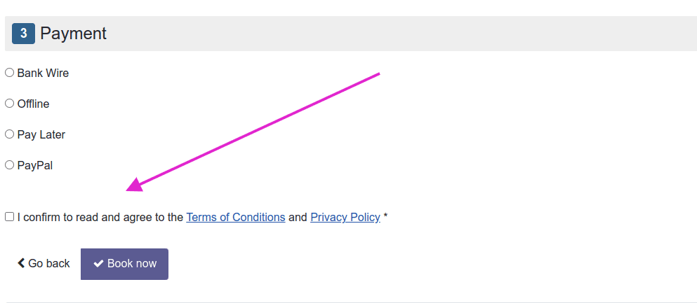 - BUG - Setting the Terms and Privacy fields, the info “Please review all the details above and click on Book Now button below to complete your booking.” Alert disappear. I add two images for you.