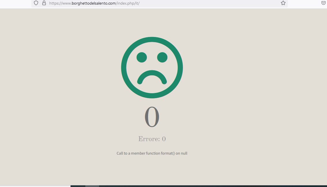 scrivo per chiedere aiuto in merito ad un problema riscontrato sul mio sito www.borghettodelsalento.com dome in homepage esce Errore 0.