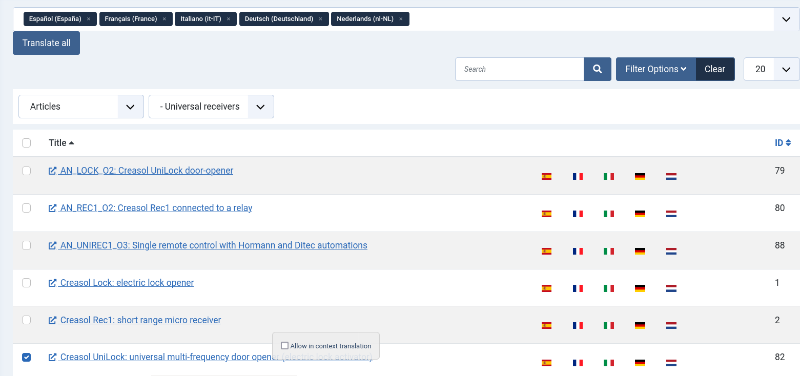 If I select one or more languages, and one or more article, then click on Translate All button, nothing.