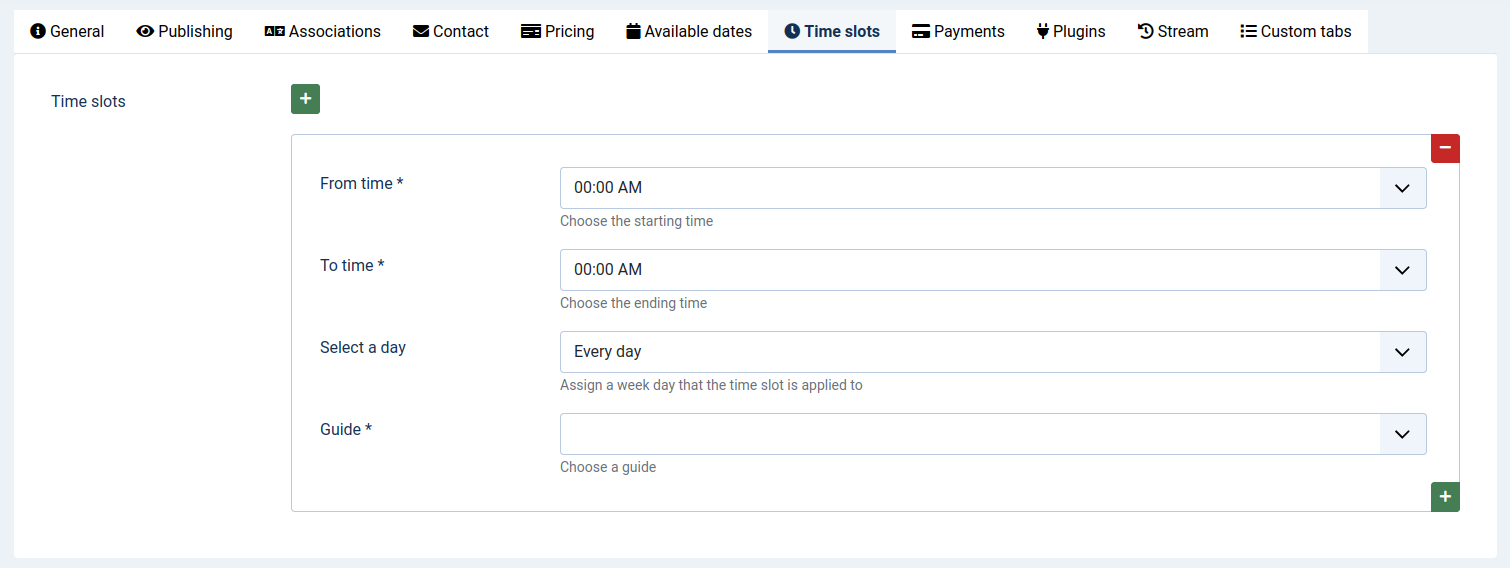 Guide is selected together with Time slots, so please choose a time slot first to see it.
