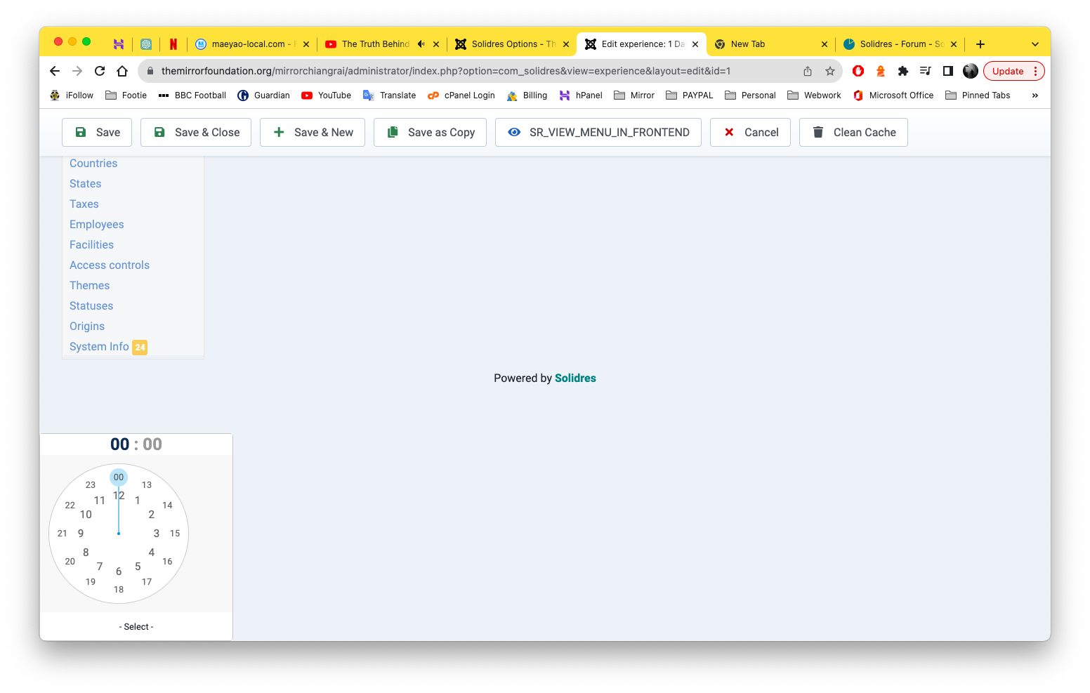 The time slot hour field was changed in Solidres 3.0.0 BETA and Experience 1.10.0, now we are using a drop down, not a clock anymore for Joomla 4 compatibility (screenshot).