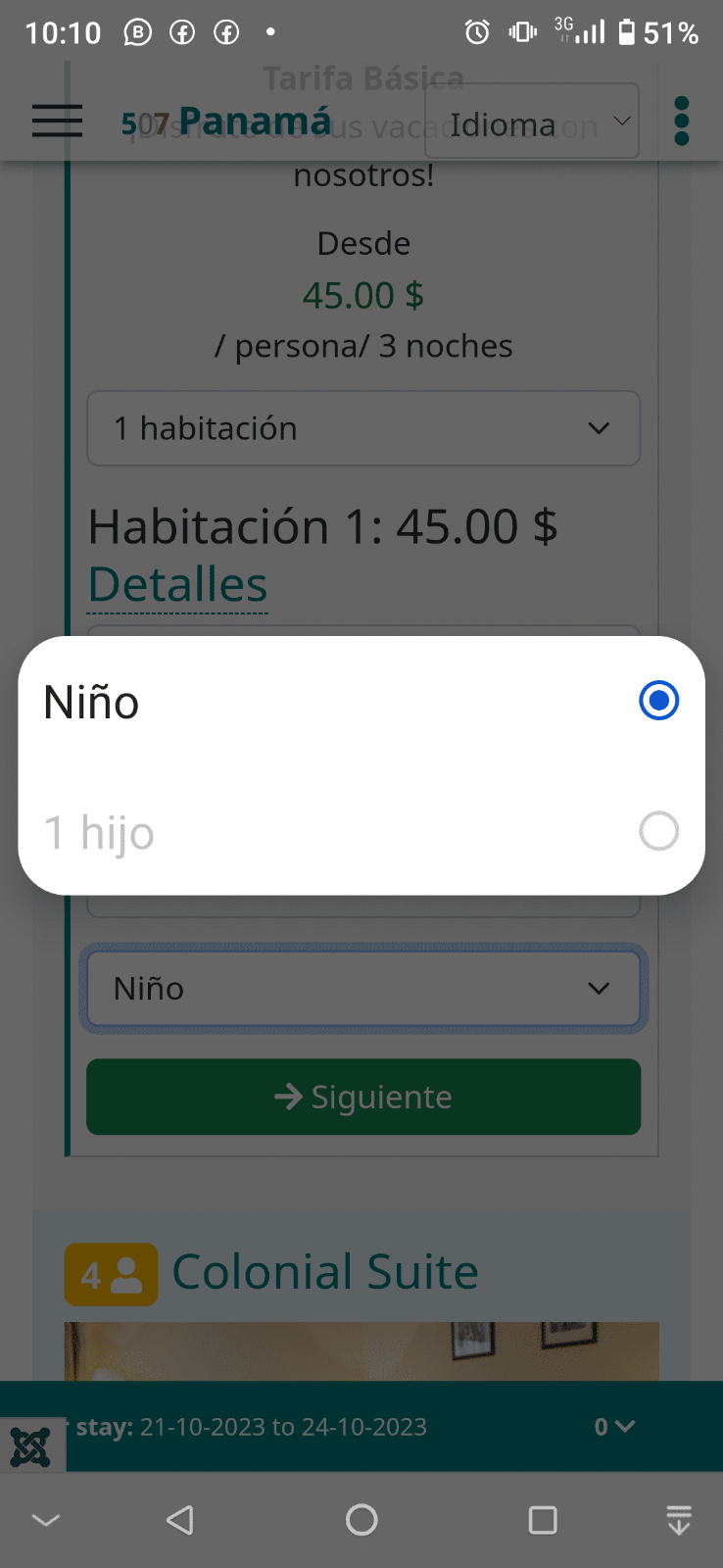 4 - Number of persons - the room permit from 1 to 3 persons, but I can only select 1 person