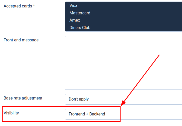 1. For property, there is a payment setting called Visibility which can be used to set the visibility of a specific payment method (screenshot). This setting is not yet available for experience, would it solve your issue?