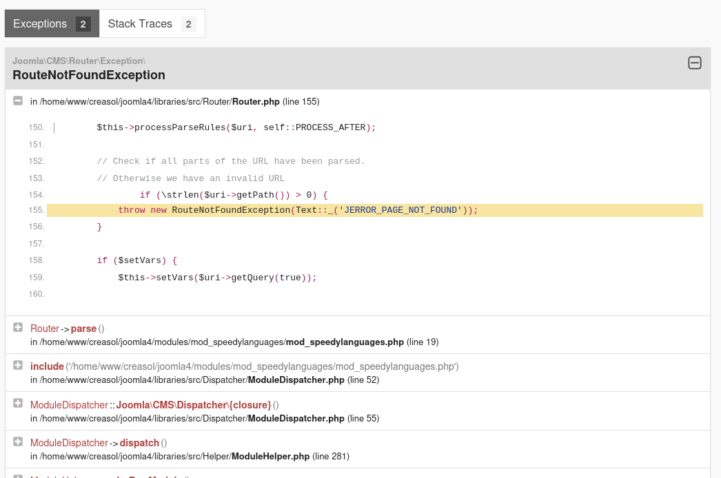 If I add the following line to the file libraries/src/Router/Router.php