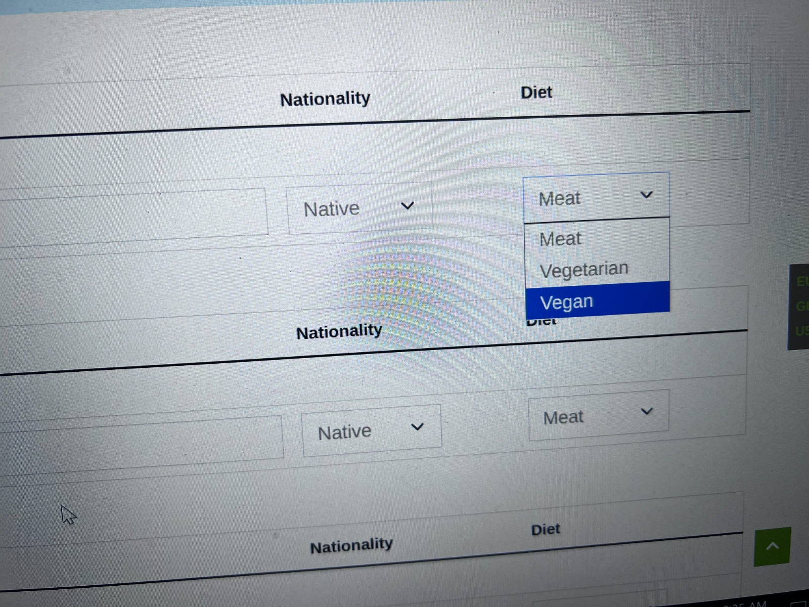 I tried also putting Fish instead of Vegan, but it appears SR_EXP_DIET_FISH (Capture-2).