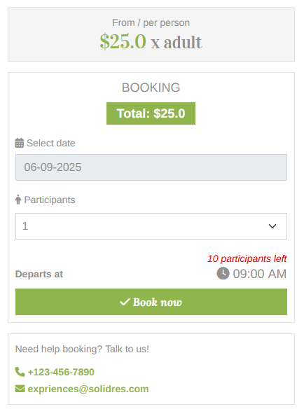 Can I get simply the calendar and number of people on my Joomla article pages (see picture) and then process directly to checkout&payment with paypal?